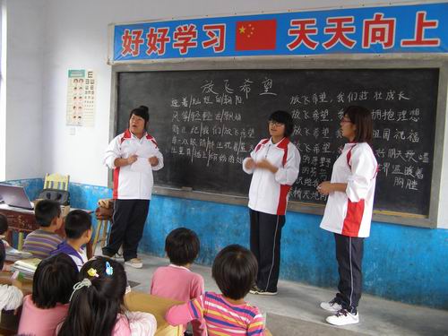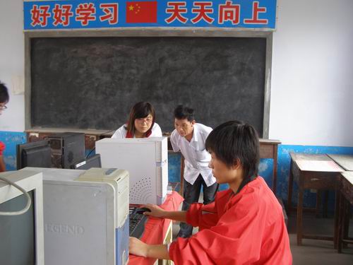此次活动,信息系师生就电脑和文艺教学方面欠缺的突出问题,对鲁能希望小学进行了针对性的服务。志愿者用一下午的时间教唱他们的校歌《放飞希望》,并把学校仅有的几台电脑进行了整理维修,教给了他们操作运用电脑的基本方法。此外,志愿者们还自发组织为孩子们买了学习用品,与学生们进行了合影留念。
