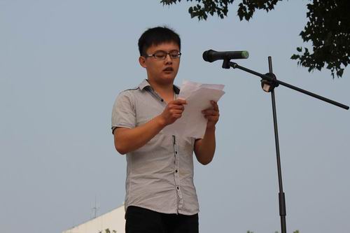 2012级高职机电一体化专业李磊同学代表参训新生发言,表示要遵守纪律、服从领导、敢于吃苦、认真训练、团结友爱、互帮互助。