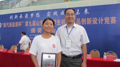 电子工程系师生在“‘泰汽新能源杯’第九届山东省大学生机电产品创新设计竞赛”中再创佳绩,获得一等奖2项,二等奖2项,三等奖2项,高培金、宋丽玲两位老师被评为省级优秀指导教师。
