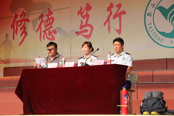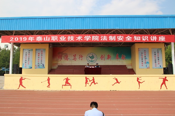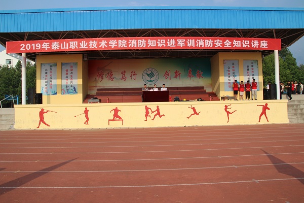 9月3日上午,我院在学院体育场举办2019级新生消防、法制安全知识讲座”。泰安市消防救援支队科长张婷婷主讲消防知识进军训,泰安市公安局岱宗坊派出所警长孙洪亮主讲法制安全知识,学院安全保卫处、学生工作处主要负责人及2019级全体新生4000余人参加活动。