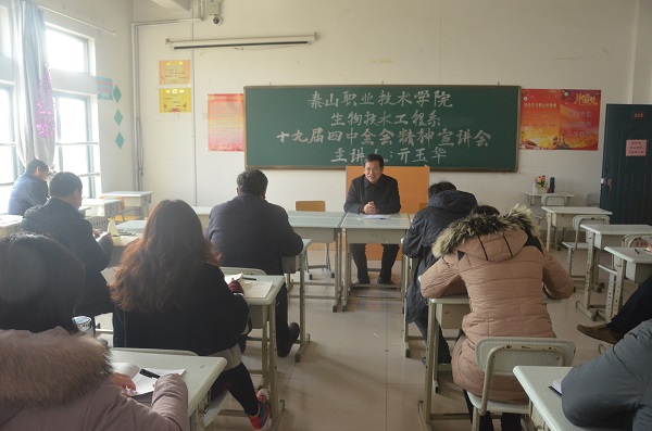1月9日下午,学院党委委员、组织人事处(离退休人员工作处)处长亓玉华到生物系宣讲党的十九届四中全会精神,全体教职工参加。