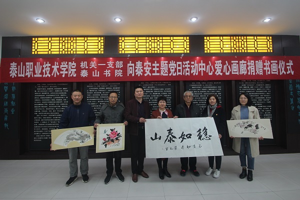 11月21日,学院机关一支部联合泰山书院组织开展“不忘初心、牢记使命”主题教育爱心捐赠活动,合计向泰安主题教育活动中心“爱心画廊”捐赠书画近五十件。