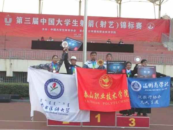 10月25-10月27日,由中国大学生体育协会主办,江苏建筑职业技术学院承办的2019年第三届中国大学生射箭(射艺)锦标赛在江苏徐州举行,我院射箭队取得三金四铜的优异成绩。