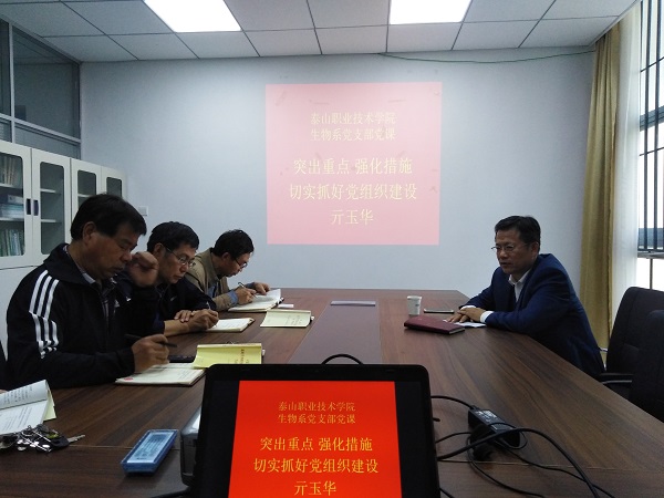 10月31日下午,学院党委委员、组织人事处(离退休人员工作处)处长亓玉华到生物系党支部,上了《突出重点,强化措施,切实抓好党组织建设》主题党课,该系全体党员及入党积极分子参加。