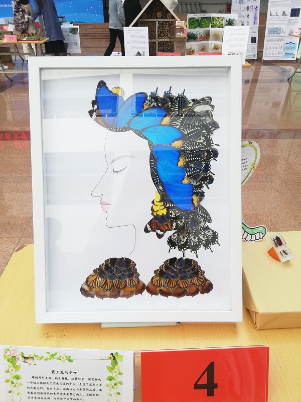 本次比赛,我院生物系指导教师和参赛学生经认真筹备,最终郭梦婷、朱正昌、刘欣的作品《戴王冠的少女(蝶翅画)》获一等奖,陶俊霖、宋晨语的作品《一虫一世界》获三等奖,教师马雪莉获“优秀指导教师”荣誉称号。此次大赛云集了贵州大学、云南农业大学、山东农业大学等省内外12所高校,126件参赛作品,经初赛筛选,最终72件作品参加决赛。