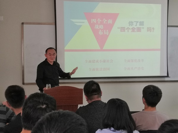 课上,项岚以习近平新时代中国特色社会主义思想为题,刘洪东以“四个全面”战略布局为题为学生上了一堂生动的形势政策课。两位学院领导,针对国际交流学院中澳班学生的特点,联系加强对外交流开放政策和扩大国际交流合作,有针对性的重点阐述了习近平新时代中国特色社会主义思想的主要内容及其内涵。他们鼓励国际交流学院学生,充分利用和把握我院国际合作办学项目优势,认真学习,提升技能,积极出国深造,开阔眼界,要从更高的层次、更高的视野积极投入到实现中华民族伟大复兴的中国梦实践中。