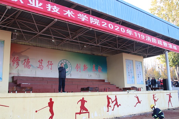 11月9日下午,我院安保处联合学工处、各系组织开展“关注消防,生命至上”119消防疏散演练活动,8200余名学生参加。