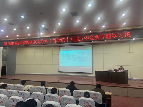 开班式结束后,市委党校刘春萌副教授以“全面建设社会主义现代化国家新征程的战略部署”为题,就十九届五中全会精神对我院“青马工程”大学生骨干做了辅导解读,讲解分为全面建设社会主义现代化国家战略背景、战略目标、战略举措三个大方面。刘教授讲解内容丰富、图表详实,切合大学生的特点,开拓了他们的视野,进一步明确了作为大学生骨干在新时代的责任担当。