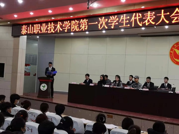 马圣金在第一次全体会议上代表泰山职业技术学院2019届学生会筹委员会作工作报告。代表们审议通过了工作报告和《泰山职业技术学院学生会章程(草案)》,选举产生了泰山职业技术学院第一届学生委员会委员。