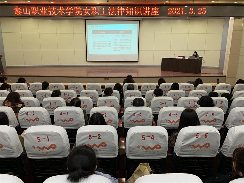 一是举办了“典亮泰职,女性权益知多少”女职工法律知识讲座,我院女职工、部分女同学200余人参加,讲座由学院法制办李莎老师主讲,她通过生动、翔实的案例以案释法,使广大女职工了解到如何用法律维护自己的合法权益;二是对女职工开展安全隐患全面排查,通过隐患排查对风险点进行补充和完善;三是各分会分别设置分会场,一方面学习与女性职工切身相关的法律法规,另一方面以宣传板报的形式对各种法律知识进行宣传;五是组织女职工参加“情系女职工, 法在你身边”全国职工线上法律知识竞赛活动。