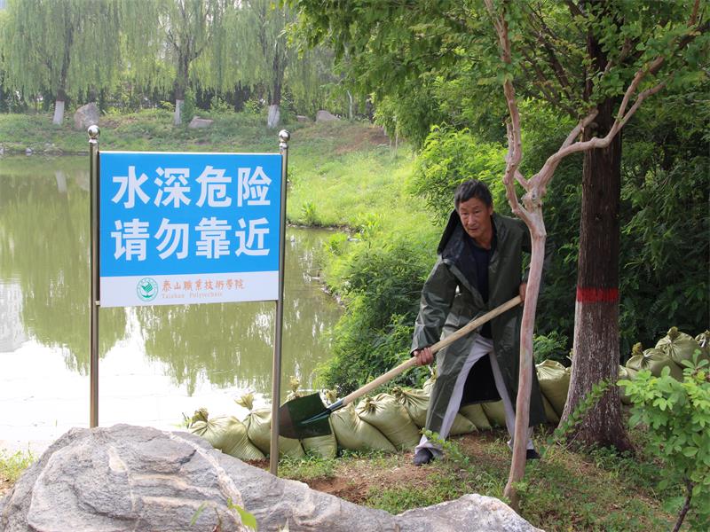 根据泰安市教育局防汛工作通知要求,认真做好防汛工作,强化防汛隐患排查,成立防汛抢险队伍,储备防汛物资,做好值班制度,确保汛期顺利度过。为进一步提高学院防汛和应对突发性事件的能力,保障师生生命财产安全。6月28日,学院防汛抢险应急队伍在学院人工湖,开展汛期防汛演练。
