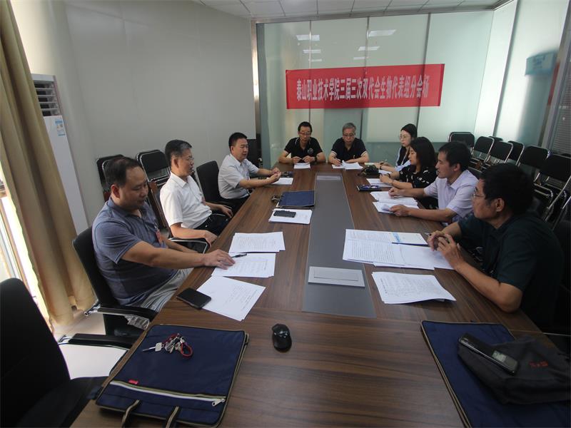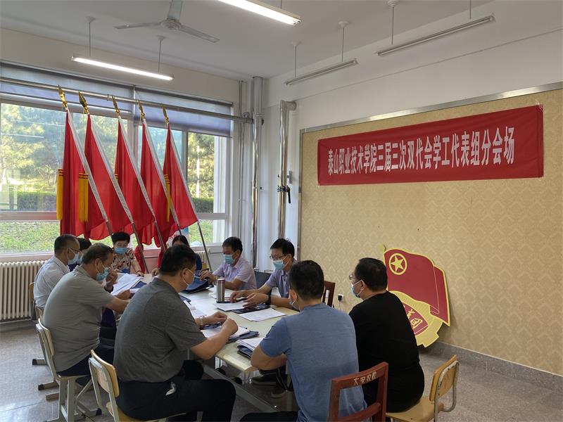 8月26日上午,各代表组召开书面审议会,分别讨论审议了《院长工作报告(草案)》、《财务工作报告(草案)》、《工会工作报告(草案)》、《工会经费审查情况报告(草案)》、《泰山职业技术学院院绩效分配办法(修订稿)(草案)》、《泰山职业技术学院“十四五”发展规划(草案)》六项议题。