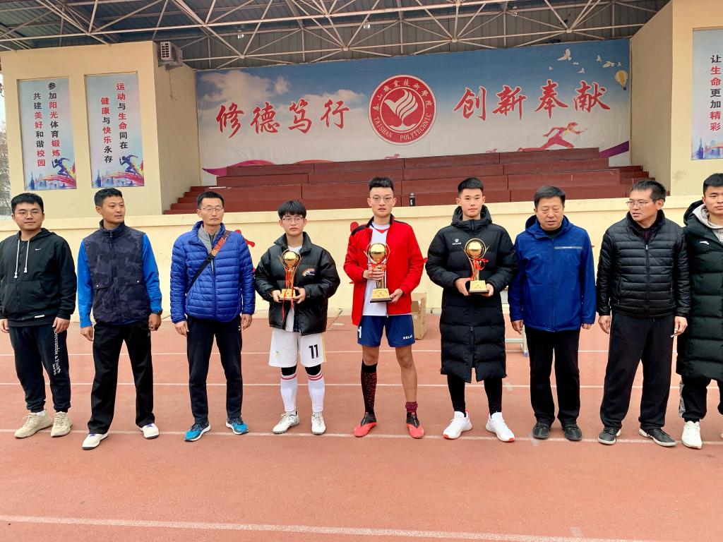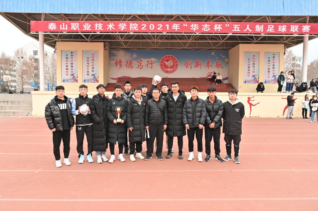 2021年泰山职业技术学院“华志杯”学生男子五人制足球联赛于12月1日下午四点在院足球场正式圆满结束。本次比赛由学院基础部体育部主办,共有学院11个系部的11支队伍参加。