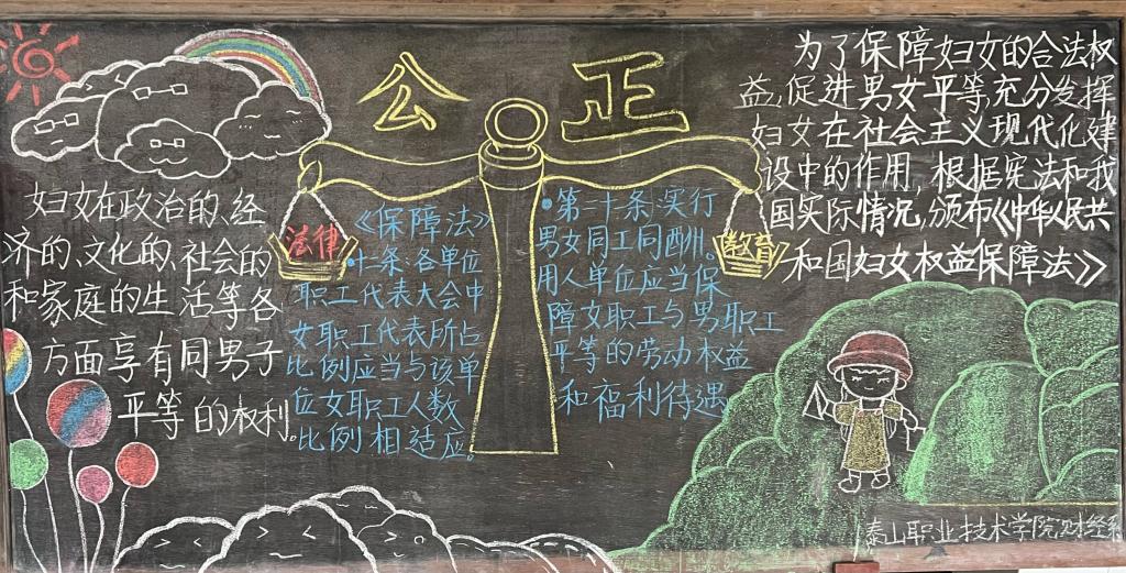 为进一步落实山东省教育工会委员会和泰安市总工会女职工委员会《关于开展2022年女职工“维权行动月”活动的通知》文件要求,提高女职工的维权意识和法律意识,我院开展女职工“维权行动月”系列活动,一是开展女职工安全隐患的全面排查,经排查无隐患;二是各分会组织女职工学习相关的法律法规4次;三是各分会制作法律知识宣传板报一期;四是组织参加女职工维权行动月线上有奖知识答题;五是举办女职工法律知识普及线上讲座;六是学院法治办为女职工提供法律咨询服务。