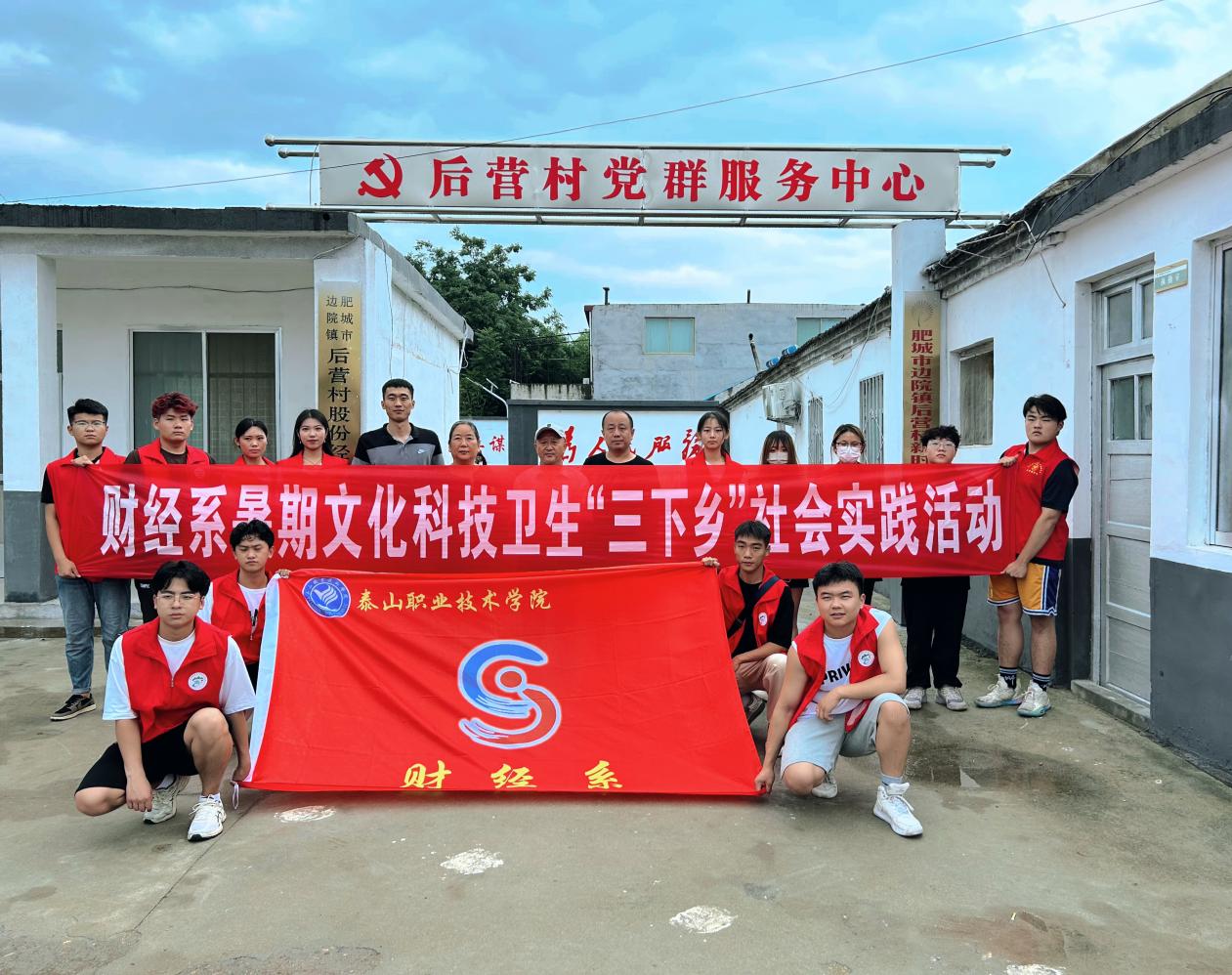 为切实发挥共青团作为广大青年在实践中学习中国特色社会主义和共产主义学校作用,2023年7月3日财经系副主任王桂珍、团总支副书记安然老师、樊琳老师、吴伟老师带领学生会志愿者服务队到肥城市后营村进行了暑期“三下乡”社会实践活动。