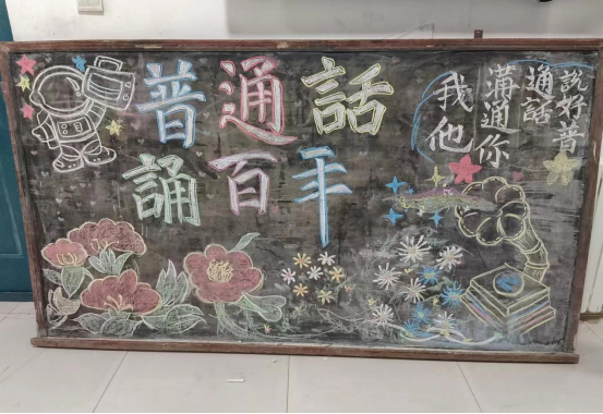 “一字一句普通话,干言万语绘中华。”各班学生积极参与制作“推普板报”,全系充满了浓厚的推普氛围。