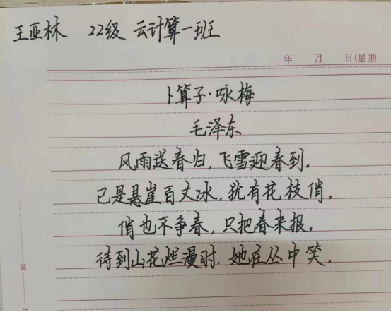 五千年文化的沉淀,五千年华语的传承,泱決大国,龙的子孙,每一个中国人的脸上,洋溢着华夏文明的灿烂。随着祖国的日益昌盛,做中国人,讲普通话,是每一个挺起脊梁的中国人的神圣宣言,更是我们责无旁贷的职责。作为新时代的青年,更应讲好普通话、宣传普通话、让更多的人了解普通话,写好方块字,让普通话成为我们的语言,让规范字成为我们的文字。【图/文:信息系 供稿:信息系 初审:王秀琳 复审:王树冰 终审:陈振超】