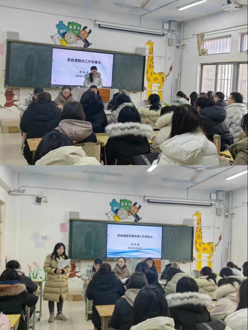 会议首先在张吉恩副主任的主持下对新入职的6位思政课教师表示热烈欢迎,思政部教师队伍进一步壮大。随后,由《思想道德与法治》教研室负责人佟倩倩和《习近平新时代中国特色社会主义思想概论》教研室负责人冯甜甜分别就本学期思政课期末考试工作和下学期思政课排课教师调度工作进行具体安排。