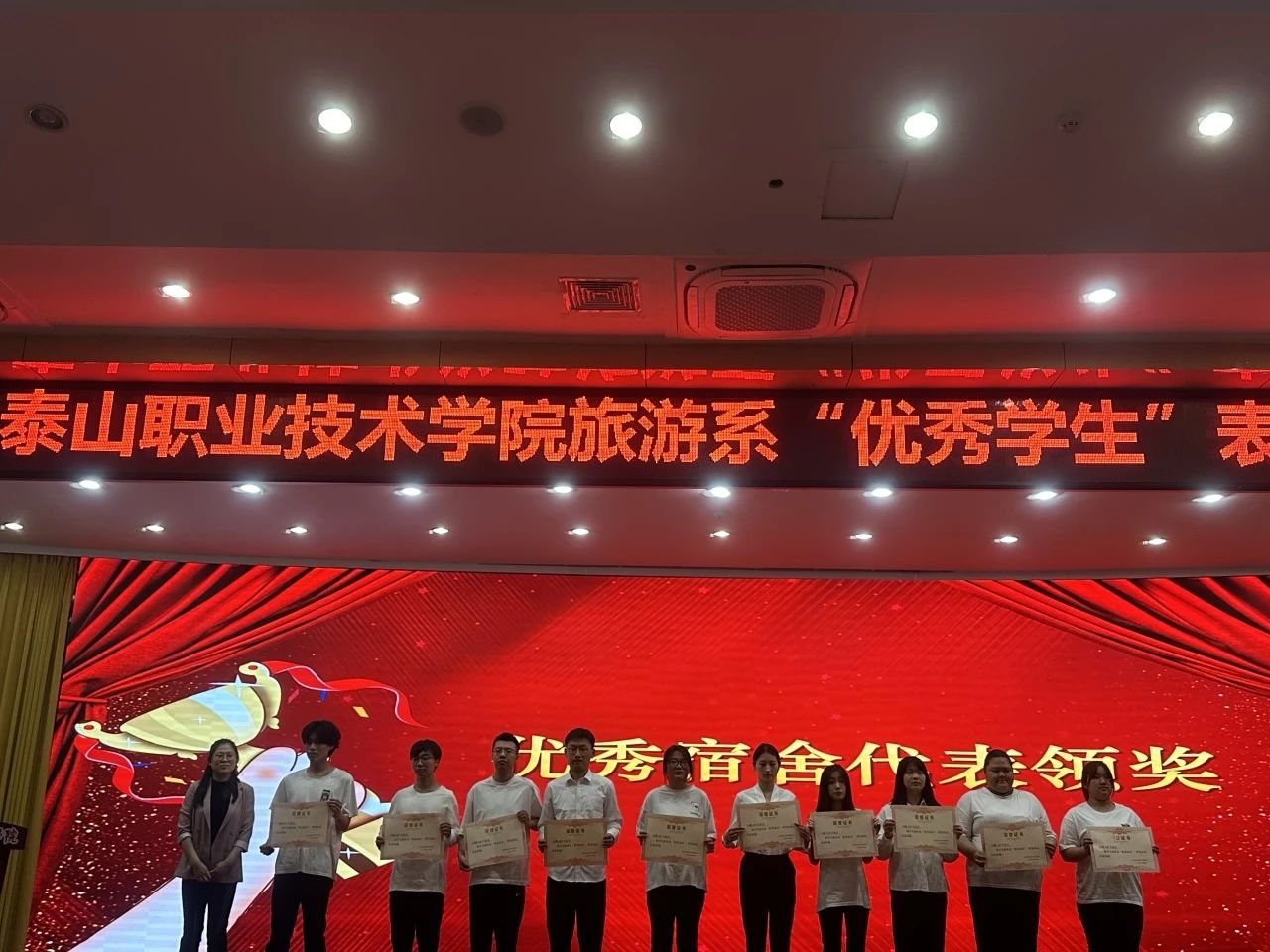 2024年5月9日在图书馆报告厅旅游系举办“优秀学生”表扬大会。