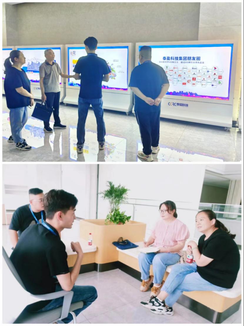 泰盈科技集团招聘经理李英伦、泰盈科技泰安三基地招聘经理徐超对泰盈科技集团股份有限公司的薪资待遇、人才储备需求、用人理念等发展情况做了详细介绍,随后带领我校访企人员参观了公司的工作环境。双方就企业人才需求、学生就业招聘渠道、企业岗位实习培训等方面进行了深入探讨。下一步,我们将邀请泰盈工作人员对学生进行宣讲,让学生更好的了解职场,为即将到来的实习、就业做好准备。