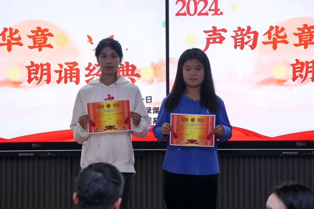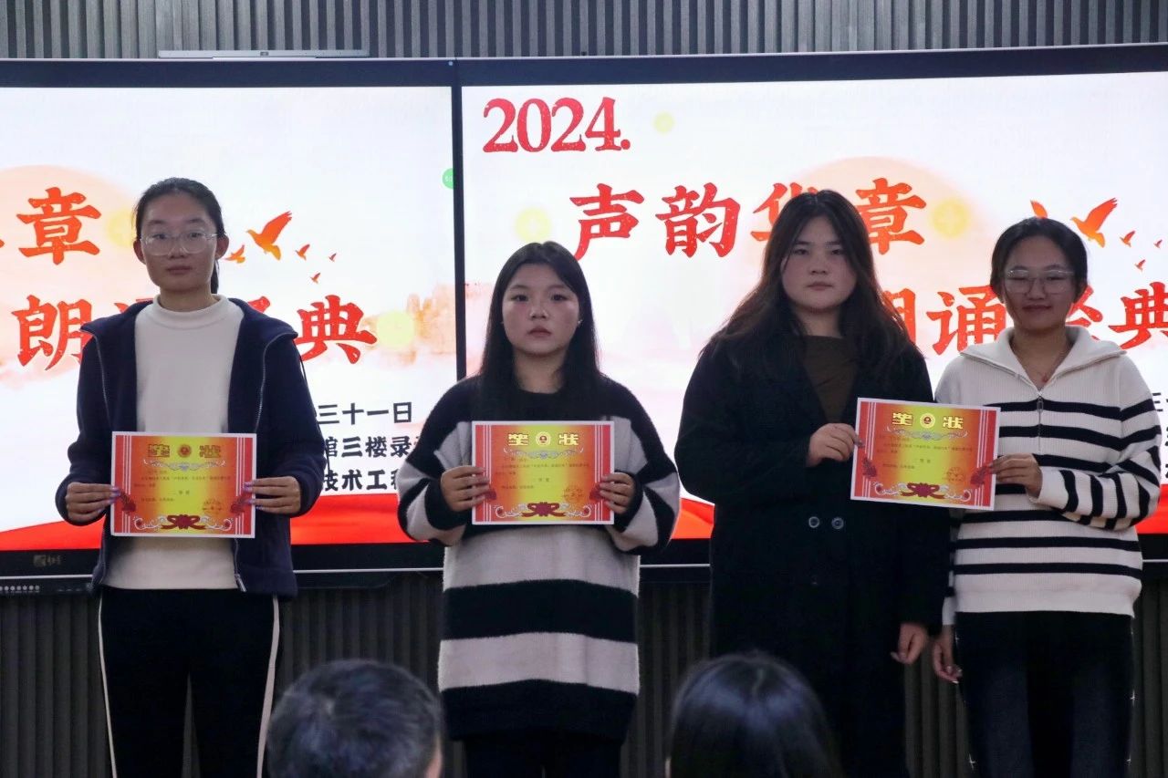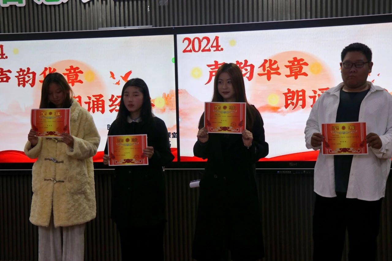 颁奖环节:经过激烈的角逐,评选出了本次朗诵活动的各个奖项。获奖同学分别上台领奖,现场响起了热烈的掌声。