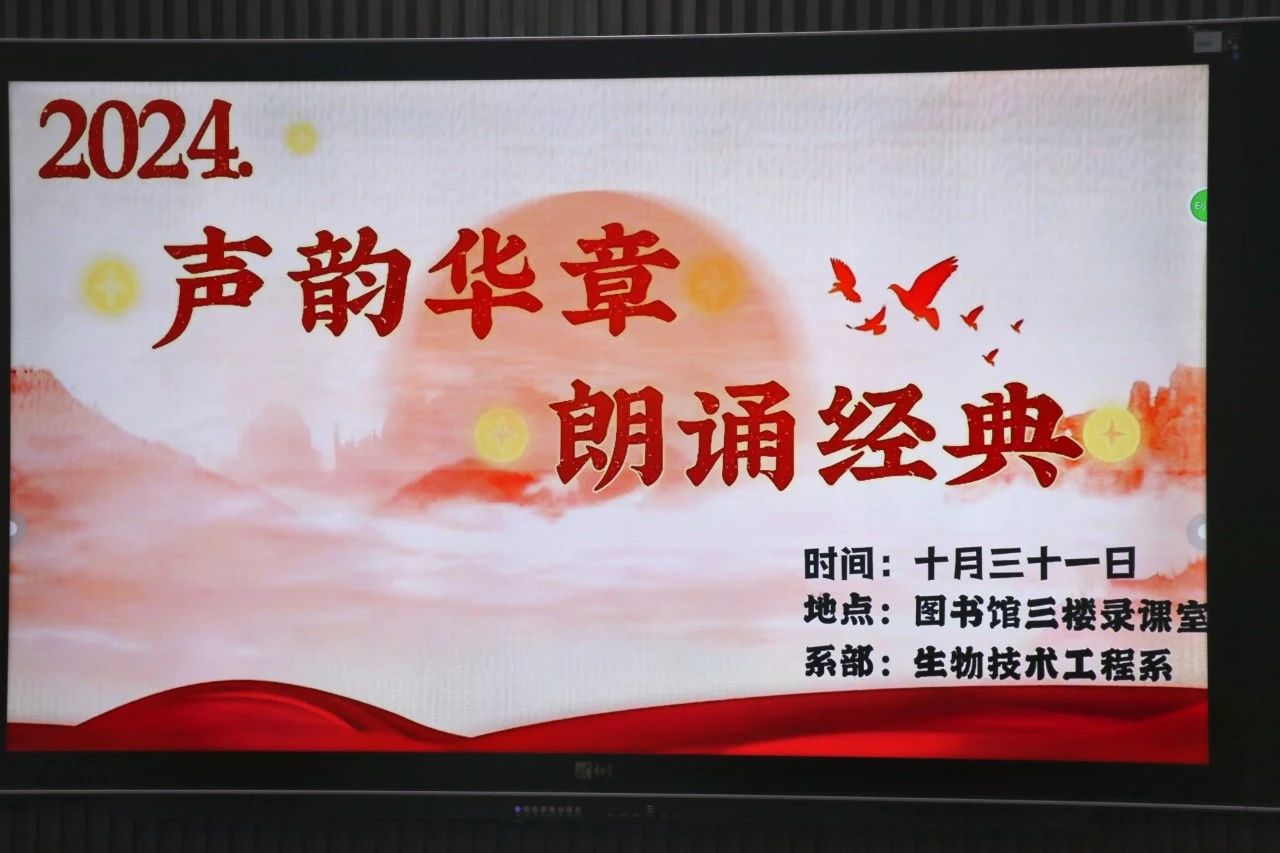 为了丰富校园文化生活,提升学生综合素养,培养学生自信、担当精神,10月31日,生物技术工程系在图书馆录播教室举办了“声韵华章,朗诵经典”学生演讲比赛。这不仅是一场语言的艺术展示,更是青春风采的绽放。在声音构筑的奇妙世界中,一场震撼心灵的盛宴—“声韵华章”正盛大开启。