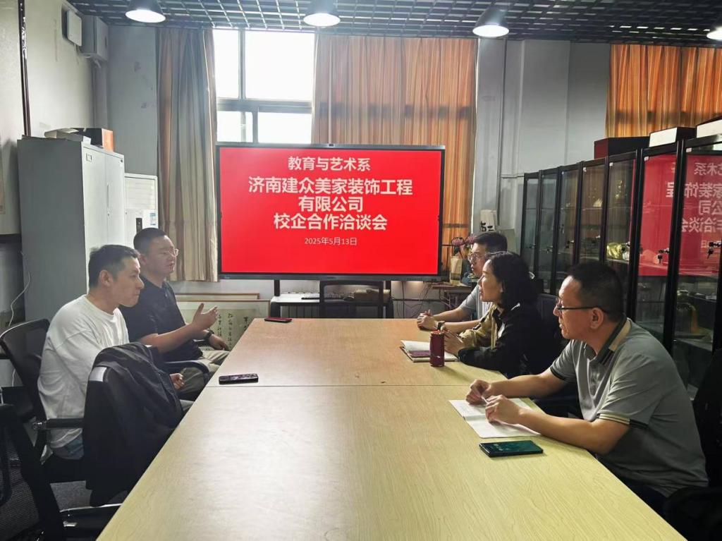 为深化校企合作、拓宽学生就业渠道,推动专业人才培养与行业需求精准对接,5月13日上午,教育与艺术系环境艺术设计专业组织开展实习就业合作洽谈活动。邀请到济南建众美家装饰工程有限公司李云翔经理、市场部姚康部长出席活动,教育与艺术系副主任张海声及骨干教师参加活动。