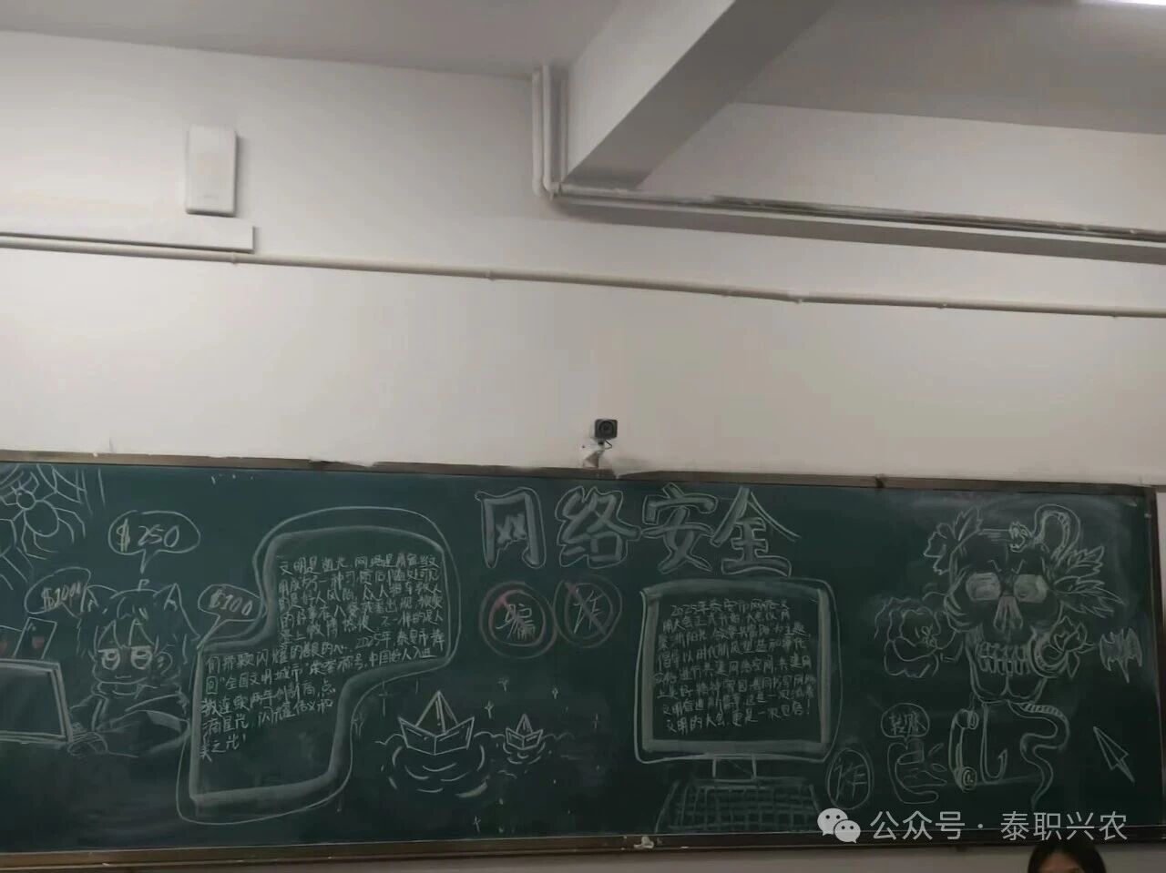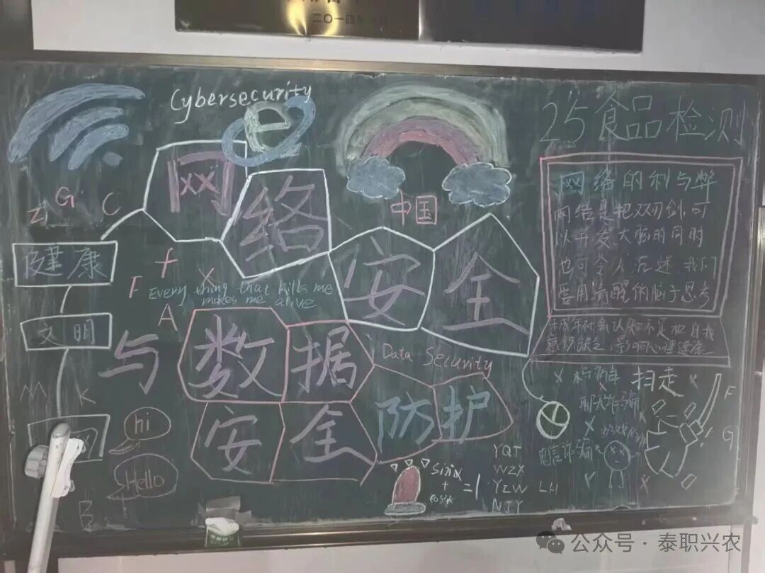 守护网络安全,从来不是某一个人的事,而是我们每一位师生的共同责任。生物技术工程系组织学生学习并绘制板报。