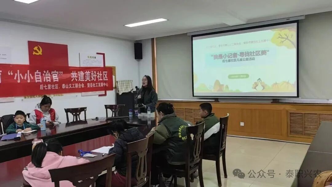 11月8日,生物技术工程系志愿者团队响应泰山义工联合会招募,参与后七里社区“我是小记者·寻找社区美”“小小自治官 共建美好社区”儿童公益活动。