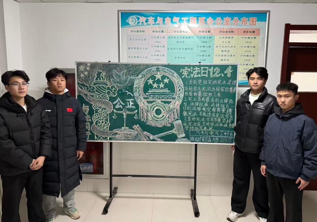 2025年12月4日是我国第十二个国家宪法日,12月1日至7日为第八个宪法宣传周,宣传主题为“学习宣传贯彻习近平法治思想,推动宪法深入人心”。汽车与电气工程系以宪法宣传周为契机,组织各班级开展系列教育活动。