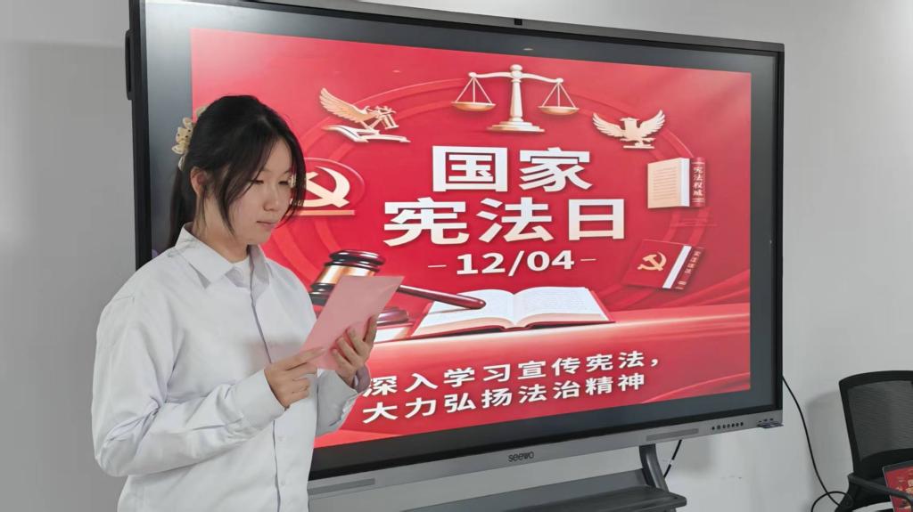 2025年12月4日是我国第十二个“国家宪法日”。为深入学习宣传贯彻习近平法治思想,弘扬社会主义法治精神,培育和践行社会主义核心价值观,扎实推进校园法治宣传教育,12月4日,学校团委组织青年学子在一站式学生社区服务中心举办“宪法晨读”主题活动。
