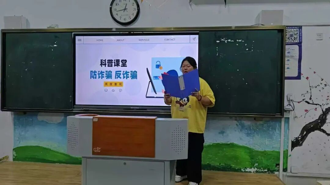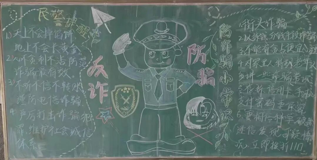 此次反诈课堂包含三项内容:一是黑板报图文宣讲,以Q版反诈网警形象搭配简洁的口头禅、顺口溜,如“天上不会掉馅饼,地上不会长黄金”,帮助同学牢记反诈知识、远离电信诈骗;二是教师反诈宣讲讲座,分享“刷单返现被骗走生活费”“注销校园贷”“AI换脸骗钱”“快递理赔陷阱”等真实案例,提升学生反诈意识;三是学生反诈科普课堂。