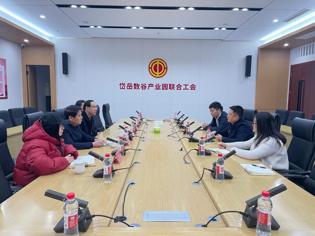随后,双方召开座谈交流会。基地负责人介绍了人才培养体系、实训项目设置及岗位需求标准。调研团队结合部门职责与基地负责人深入探讨:围绕图书馆(信息中心)在人工智能资源服务、数据资源共建共享等方面的优势,提出了校企资源互补、协同赋能的合作思路;辛显雪书记探讨校企共建实训基地、联合开发课程、开展师资互聘的可行性;潘庆勇围绕信息技术服务、算力资源对接等事宜进行沟通;王姣姣聚焦学生实习就业、职业素养培养,了解基地实习管理模式与就业扶持政策。