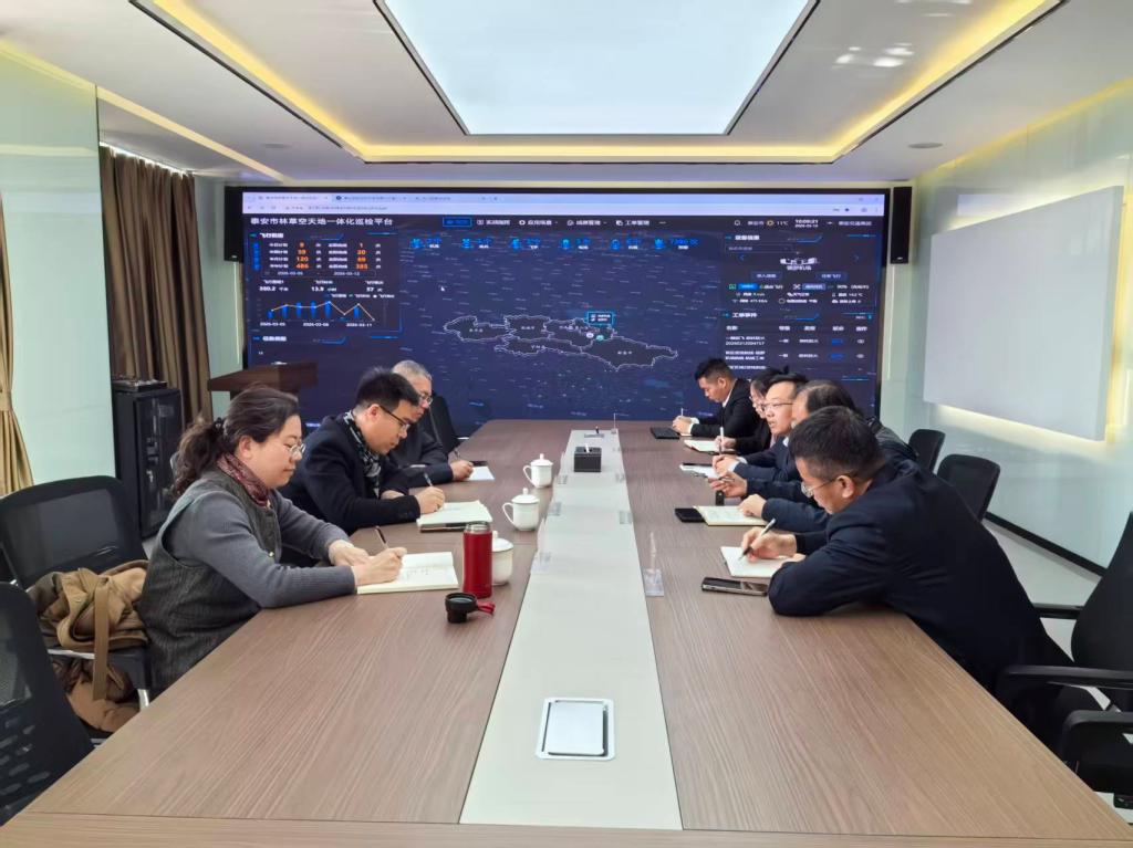 企业相关负责人钟艳陪同调研组参观泰安市低空经济全场景示范基地平台,并围绕平台的运行机制、应用场景及技术特点进行详细介绍。该平台作为泰安市低空经济的重要基础设施,涵盖城市巡检、智慧城市数据采集、应急救援等多个应用场景,为无人机专业人才培养提供了真实、前沿的实践环境。