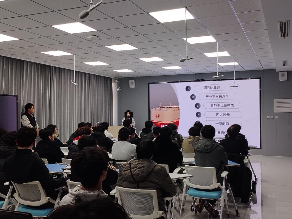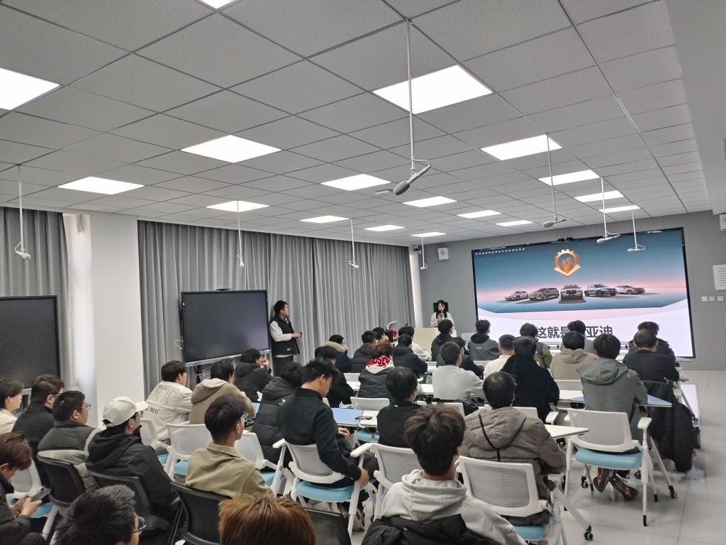 企业导师介绍了比亚迪的发展历程、企业使命及核心价值观,帮助学生加深对企业文化的理解。随后,围绕生产工艺,结合视频和案例,系统讲解了电池制造、整车装配等流程,展示了智能制造的先进水平。