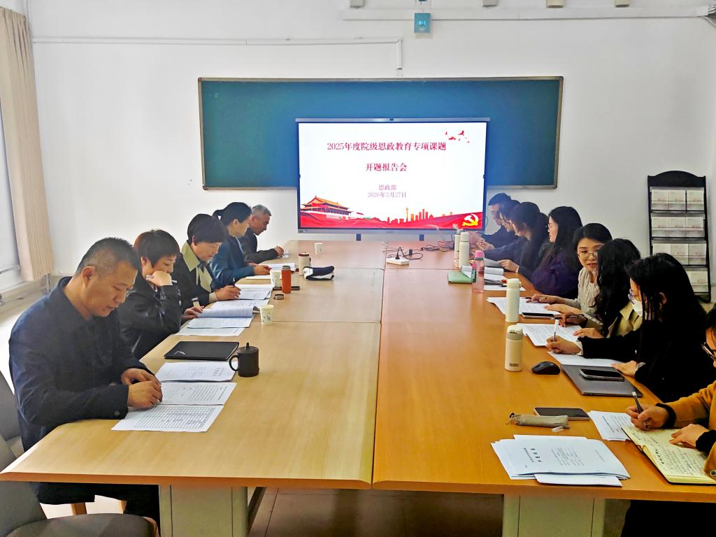 3月27日,思政部召开2025年度院级思政教育课题开题论证会。李桂菊等4名高级职称人员担任评审专家,各课题负责人及课题组成员参加会议。