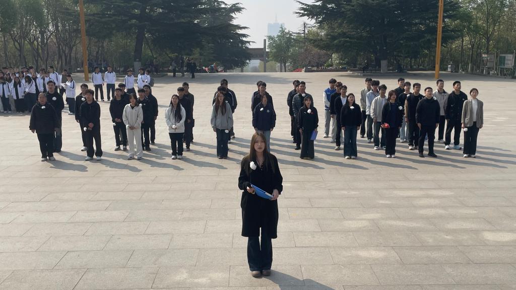 活动由建筑工程系主任王桂珍带队,团总支副书记吴强、辅导员王凯旋、于倩雯,2024级、2025级志愿者代表共同参与。师生齐唱国歌并在纪念碑前庄严宣誓。师生代表向烈士敬献花篮,并分组擦拭墓碑、献上手工菊花。在讲解员带领下,大家参观革命烈士陈列馆,通过历史图片和文物了解先烈事迹。