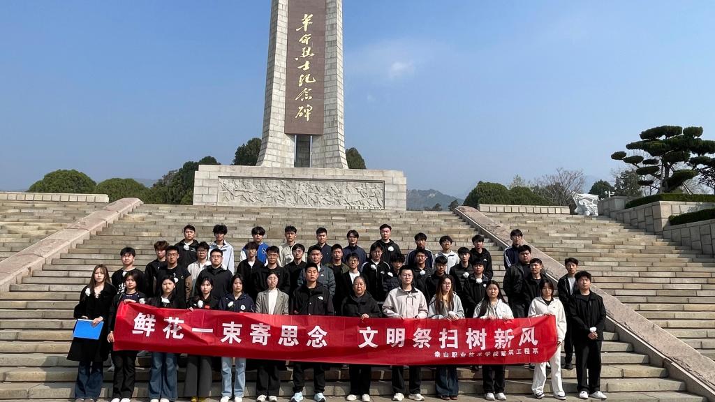 为传承和弘扬英烈精神,深化爱国主义教育,大力弘扬中华优秀传统文化,4月1日,建筑工程系组织师生前往泰安革命烈士陵园,开展“缅怀先烈志,共铸中华魂”清明节文明扫墓活动。