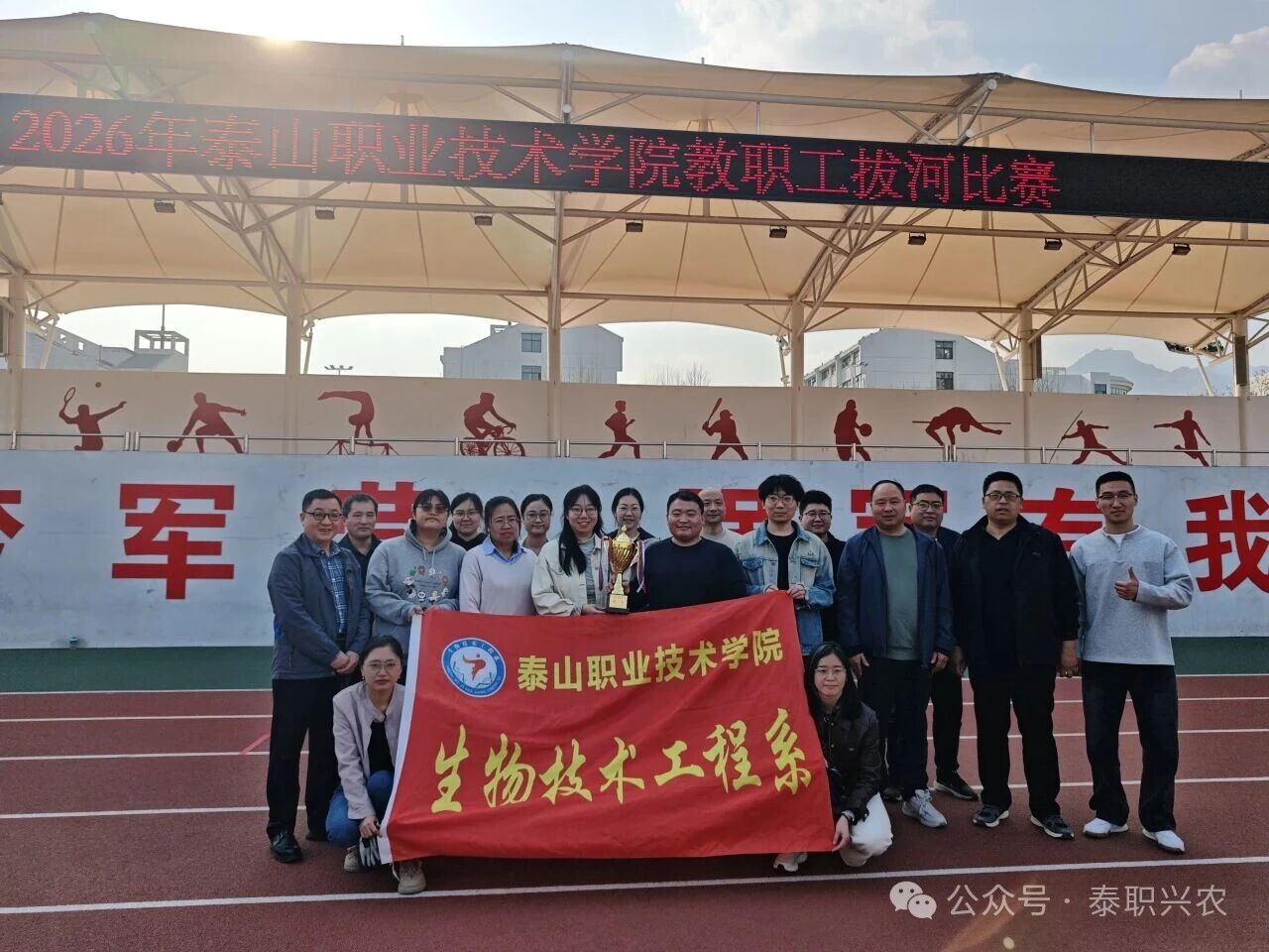 为丰富教职工文体生活,增强团队凝聚力,展现教师积极向上、奋勇拼搏的精神风貌,4月1日,生物技术工程系组织教师参加学校教职工拔河比赛。