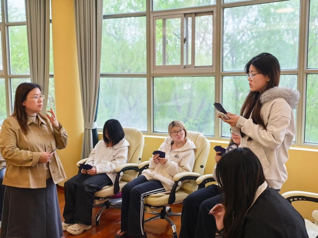 王静借助睡眠卡,让同学们抽取改善睡眠的方法,并鼓励大家相互交流、分享抽到的睡眠策略,在众多方法中探寻适合自己的专属方案。同学们积极发言,在轻松的氛围中共同探讨解决睡眠问题的方法。