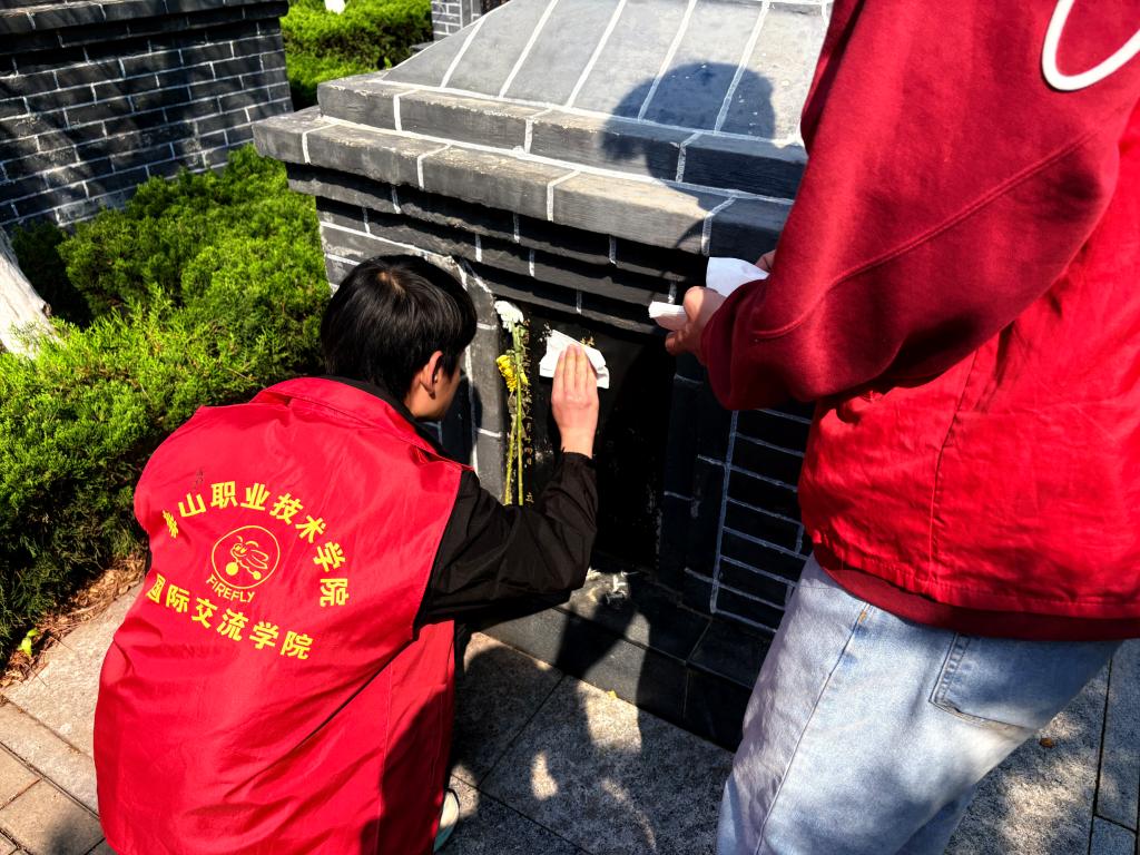 学生会和团总支精心统筹人员统计、分工安排、物资准备、陵园对接等工作。在烈士陵园内,志愿者们怀着肃穆的心情有序瞻仰烈士陵墓、擦拭墓碑。大家集体参观革命历史纪念馆,跟随讲解员回顾峥嵘岁月,深入感悟爱国主义精神的深刻内涵;开展陵园环境清洁、文明祭扫劝导、红色宣讲辅助等志愿行动,用实际行动传递文明理念、致敬伟大先烈。