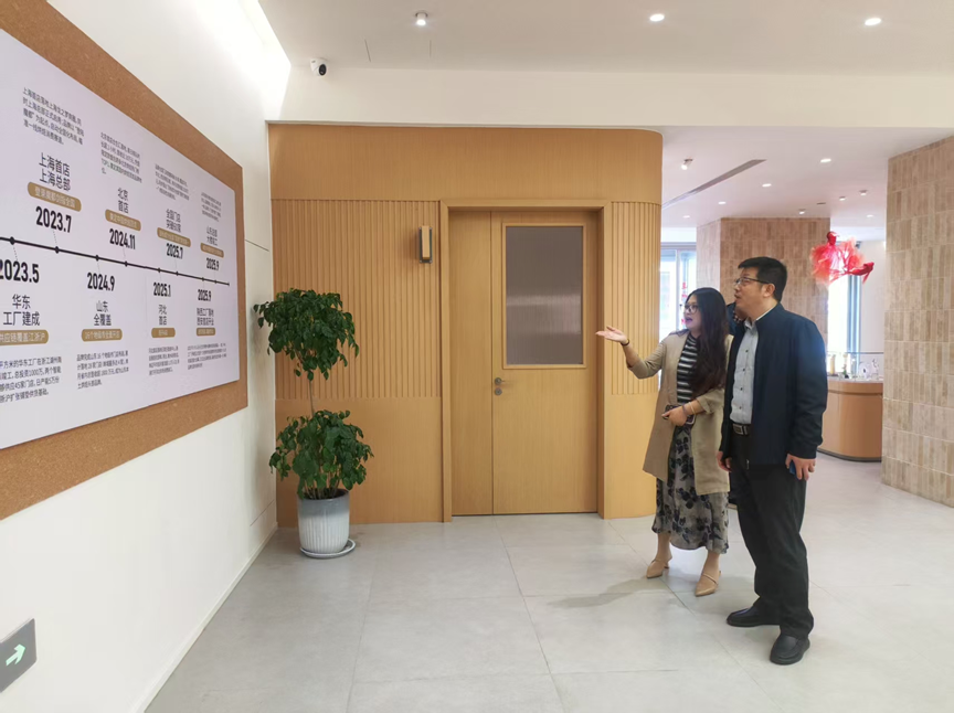 集团人资总经理赵总带领大家实地参观企业总部设施、产品研发中心、办公场所及员工设施等,介绍石头先生的烤炉“取山地之材,做中国面包”的品牌理念,以及从本土小店到全国烘焙标杆品牌的发展历程。同时,赵总针对企业岗位薪资待遇、晋升通道、人才培养体系进行介绍,为校企人才培养对接提供了行业参考。