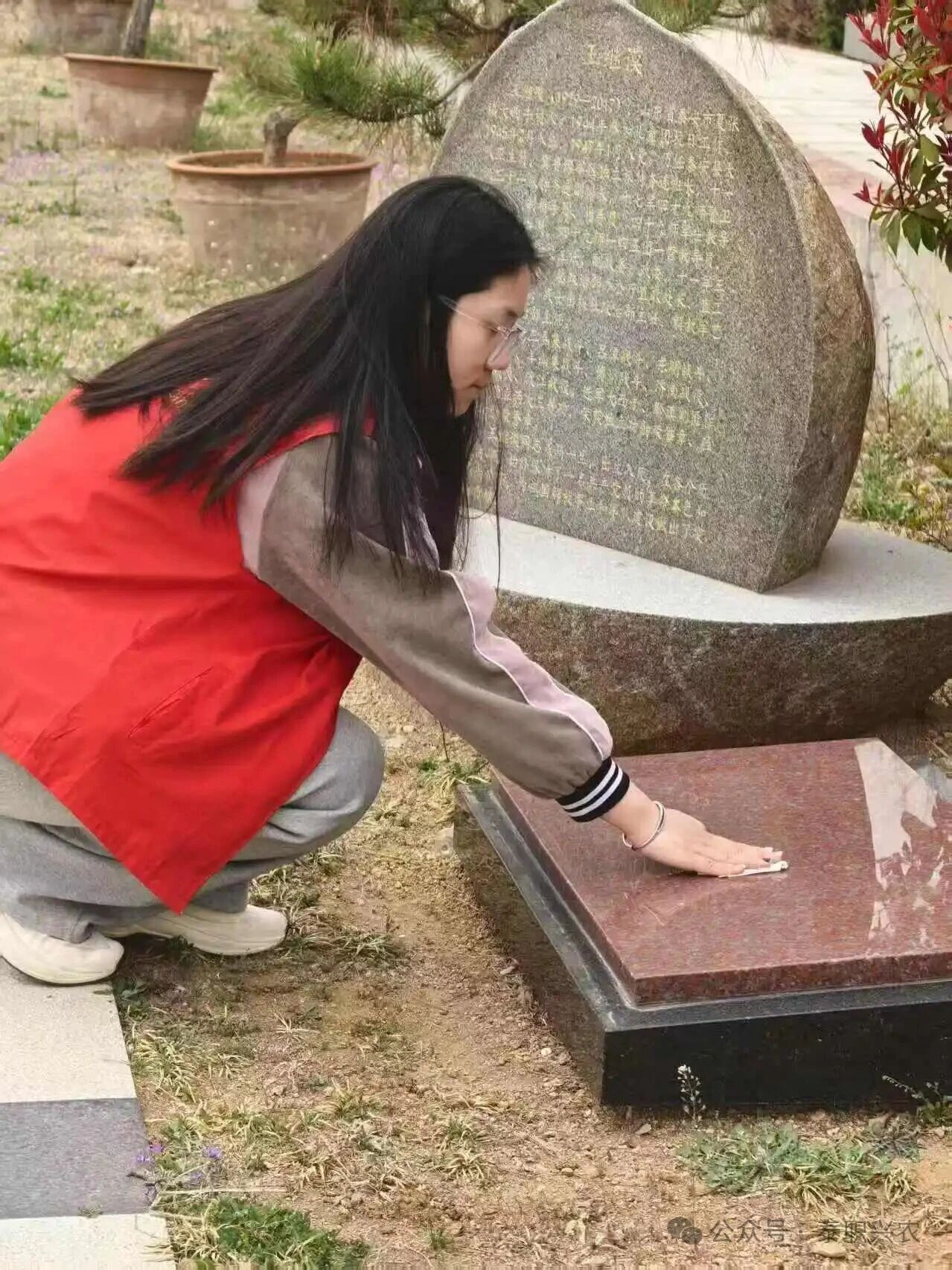 学生们在纪念碑前敬献鲜花,表达哀思。随后,学生分工擦拭墓碑、清理陵园杂物,维护陵园环境。驻足碑前,学生通过碑文了解革命先烈为民族解放和人民幸福奋斗的历史。