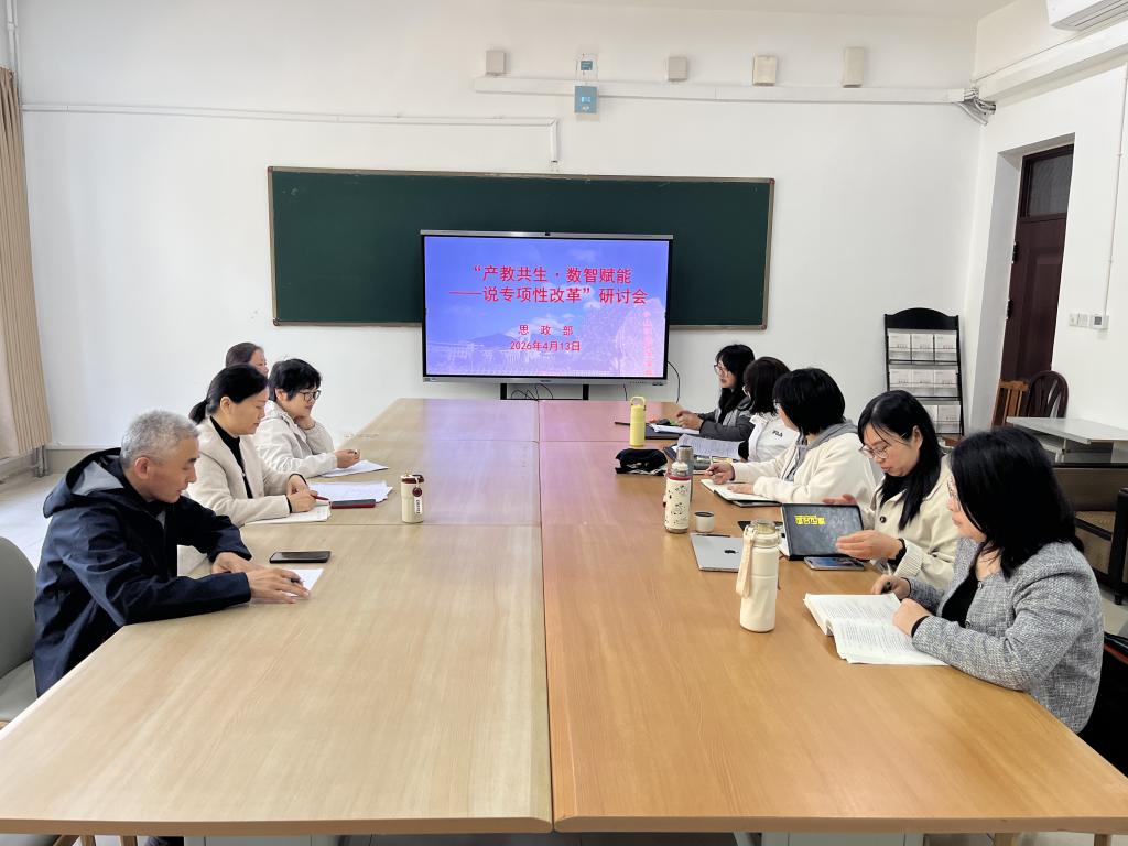 为深入落实学校数智化赋能教育教学高质量发展要求,推动思政课改革创新,4月13日,思政部召开“产教共生·数智赋能——说专项性改革”活动研讨会。思政部副科长朱波、冯甜甜、佟倩倩及各教研室主任、骨干教师参加会议。