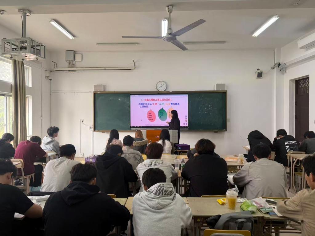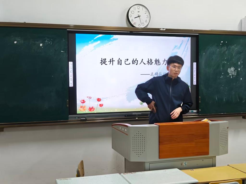 大一班会主题为“正确认识自我,提升人格魅力”。通过“画画像”“猜猜看”等互动活动,同学们从生理、心理、社会三个维度探索自我,学习运用自评、他评、比较及心理测验等方法全面认识自己,认识到应接纳自身优缺点,理性对待他人评价。