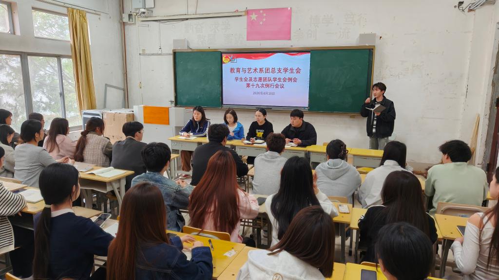 为统筹推进学生会日常工作,明确春季运动会筹备任务,4月16日,教育与艺术系学联学生会在明理楼205教室召开本学期第十九次例行会议暨2026年度春季运动会工作部署会,教育与艺术系相关负责教师和学生会部分成员参加。