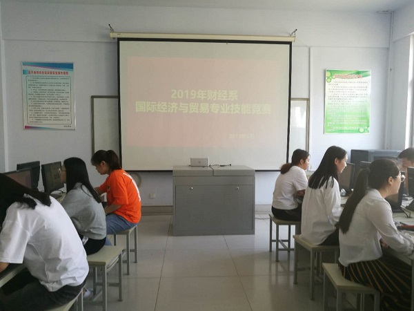 5月22日,财经系在行知楼实训室举行国际经济与贸易实务项目技能大赛,18级国贸易专业学生参加。