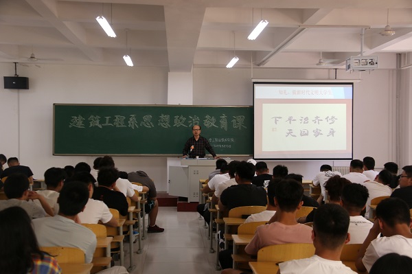 5月22日下午,建筑工程系在行知楼A-201举办思想政治教育讲座,该系党总支书记杨爱军主讲,全体学生参加。