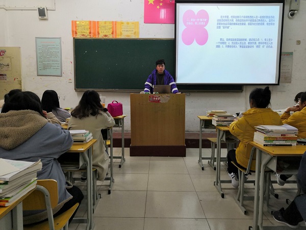 班会上,班长通过ppt课件和相关视频,讲述了“女生节”的由来。之后,同学们交流讨论“如何做一个自尊、自爱、自立的女生”,使女学生意识到自身安全的重要性,大家亟需提高自我保护意识。最后,男生给女生写了祝福便签,本次班会圆满结束。