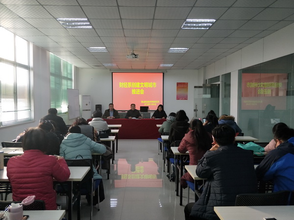 12月4日下午,财经系在居正楼行动实训室召开创建文明城市推进会,该系系主任主持会议,全体教师参加。